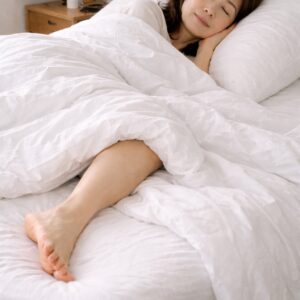 軽めで通気性のよい天然素材の寝具が合うこともあります。